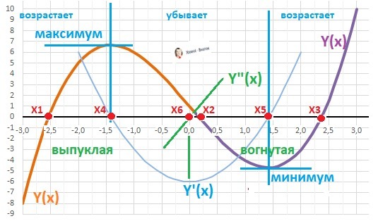 6. Производная функции.Y'(x)= 3*x² -6*Х = 3x*(x-2) = 0.