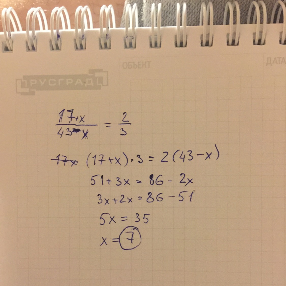 Какое число добавить к числителю и отнять от знаменателя дроби 17/43, чтобы получить дробь 2/3? Напишите, пожалуйста, подробное решение.