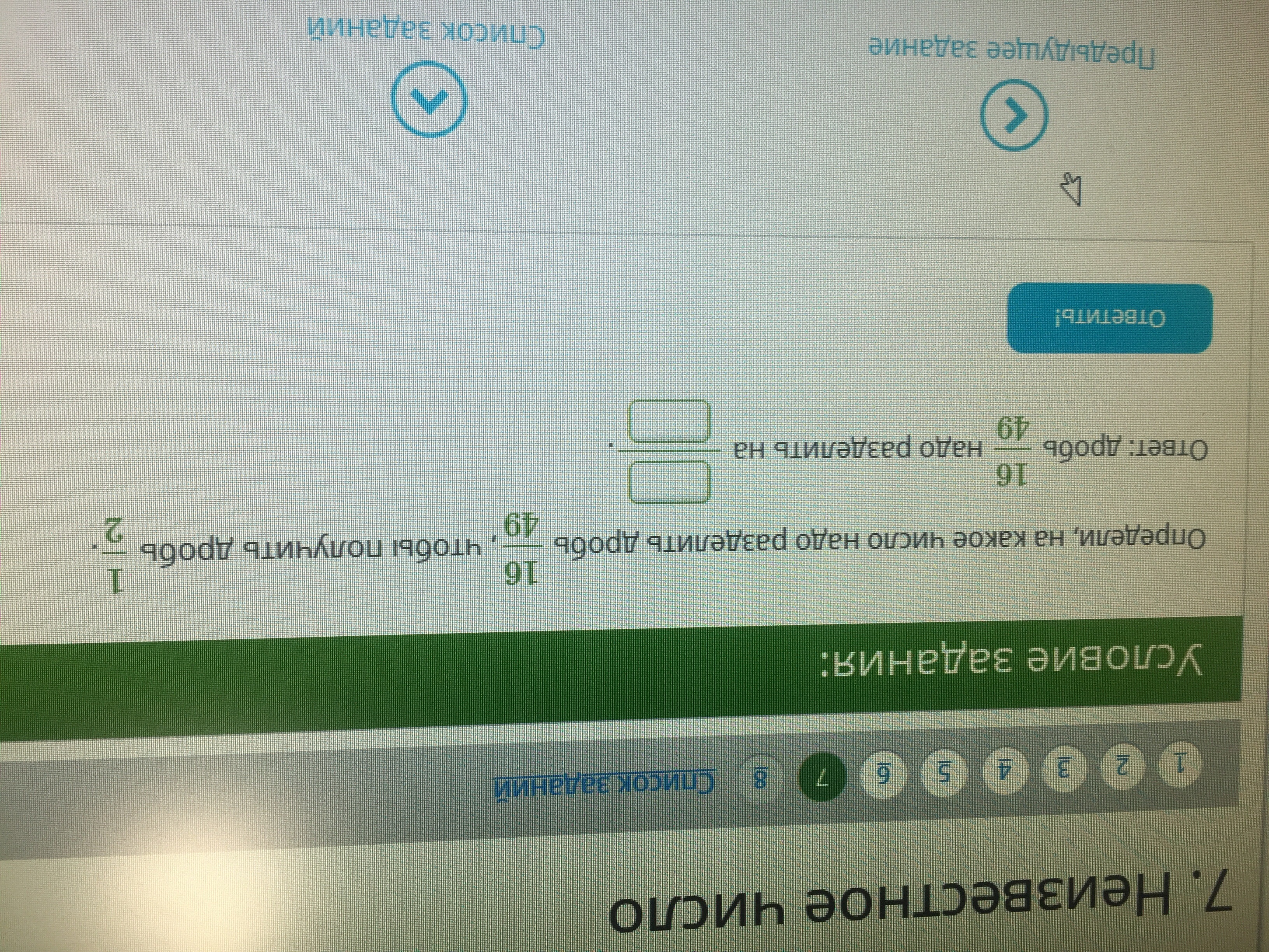 нужно дробь 16/49 разделить на 1/2 ПОЛУЧИТСЯ 32/49