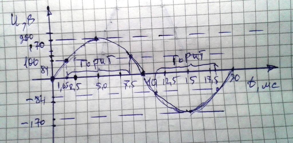 Используя принцип симметрии можем сделать вывод, что в течение периода лампа не горит 1,65 мс * 4 = 6,60 мс.