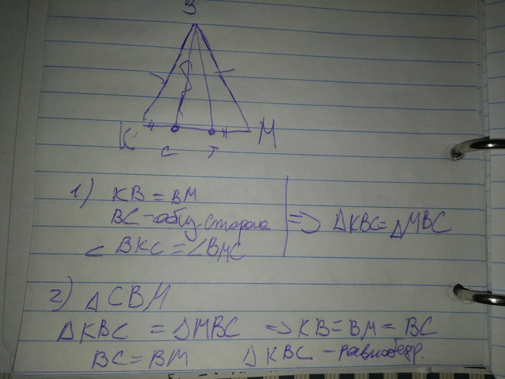 2. треуг. кбс = треуг. мбс, из чего следует, что кб= бм (по условию) = бс