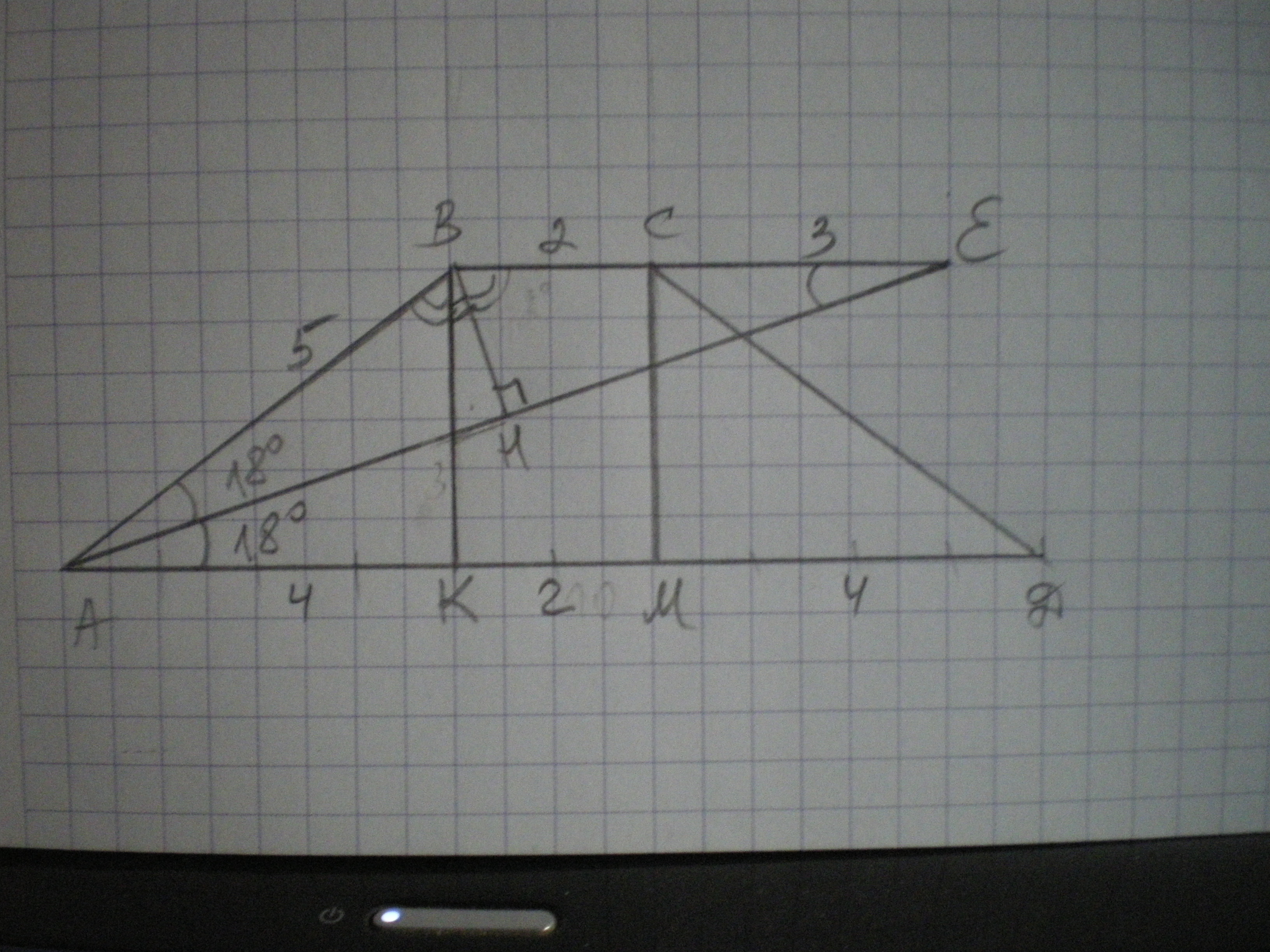 Проведем высоты ВК и СМ. КМ=ВС=2 см, АК=МД=(10-2):2=4 см.