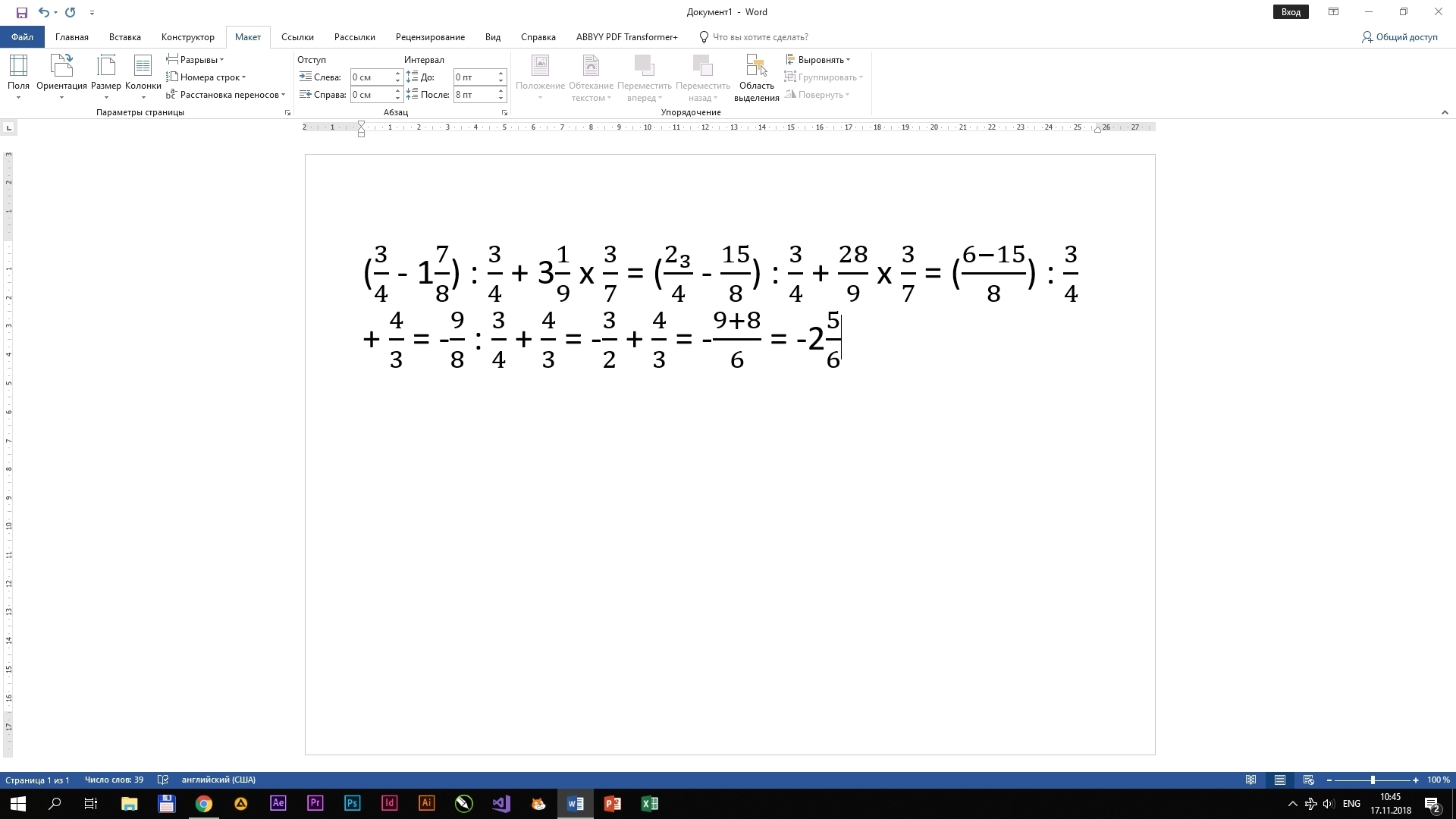(3/4 - 1 7/8) : 3/4 + 31/9 x 3/7 = (2_3/4 - 15/8) : 3/4 + 28/9 x 3/7 = ((6-15)/8) : 3/4 + 4/3 = -9/8 : 3/4 + 4/3 = -3/2 + 4/3 = -(9+8)/6 = -2 5/6