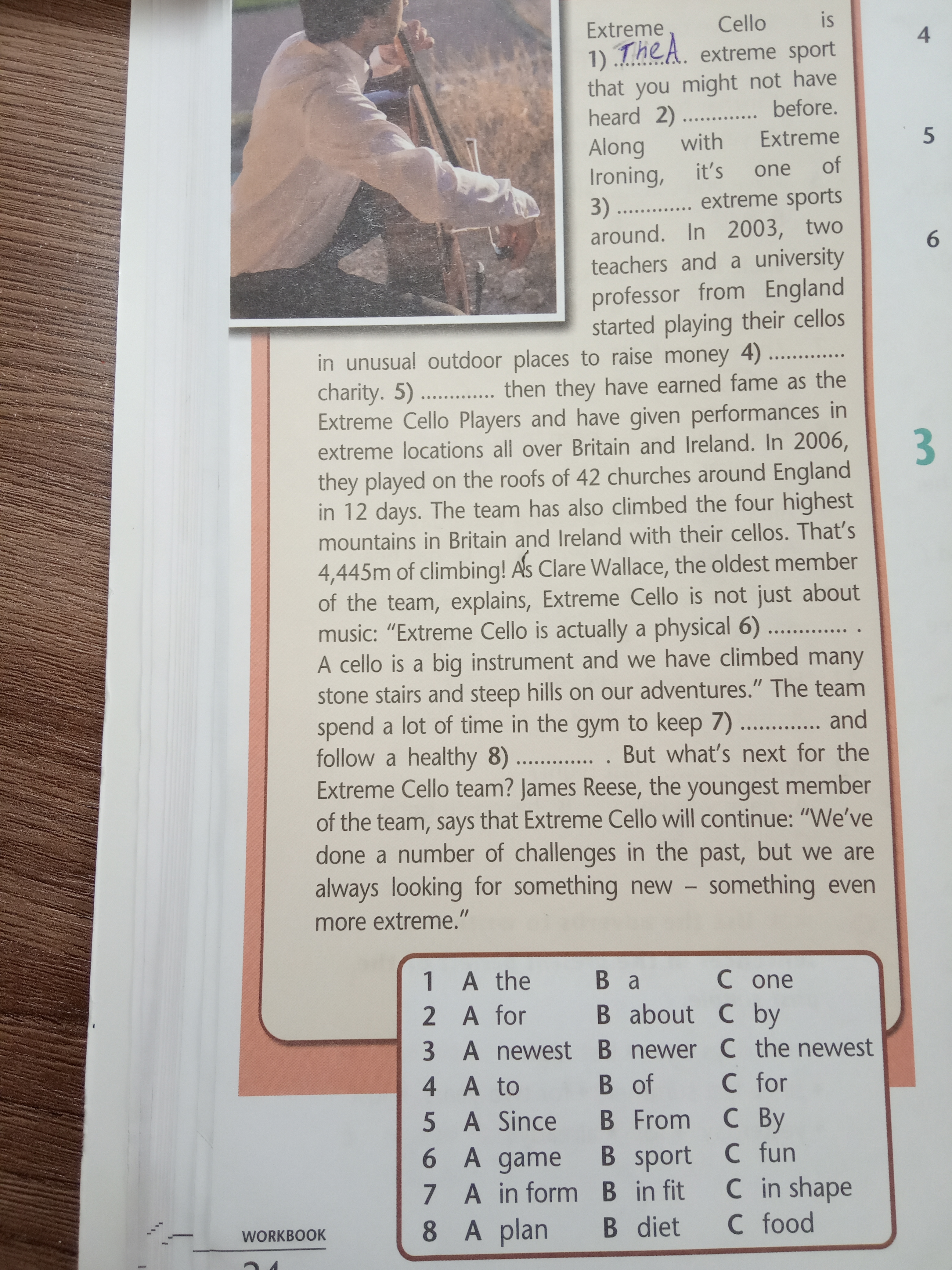 1.an 2. About 3. The newest 4. For 5. Since 6. Sport 7. In shape 8.diet