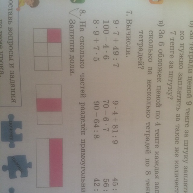 я вижу только 3 прямоугольника( и два кусочка пазлов, но к ним вопрос про доли точно не относится
