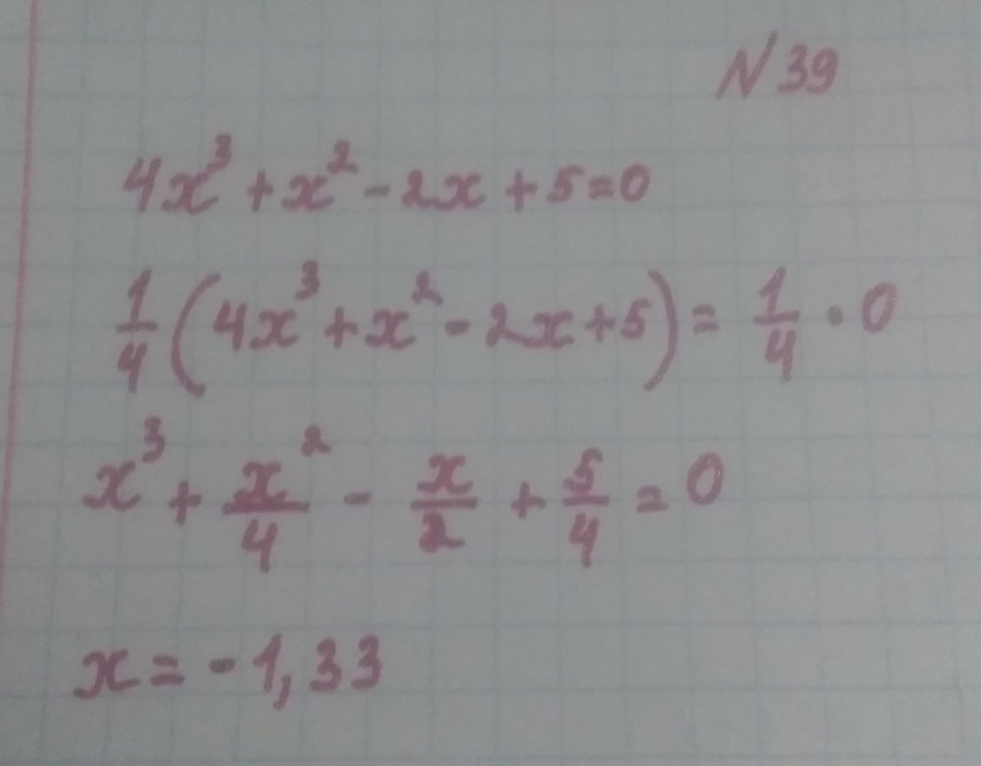 х=-1,33 это неверный ответ, подставь в уравнение и 0 не получится да и решение отсутствует . как получилось 1.33?