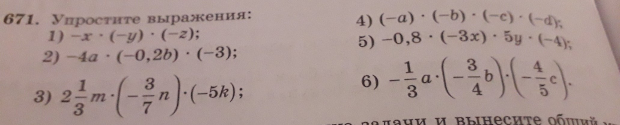 3) 2 1/3m * (-3/7n) * (-5k) = 7/3m * (-3/7n) * (-5k) = -1mn * (-5k) = 5mnk