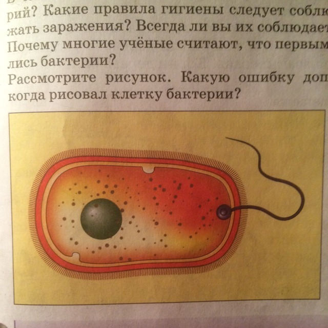 Бактерии прокариоты, они не имеют ядра. На рисунке изображено ядро, что является ошибкой
