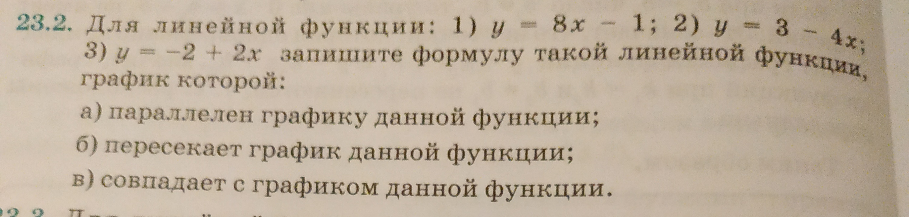 1) у=8х-1 параллелен у= 8х+6, пересекается с у= 6х+5, совпадает с у= 8х-1