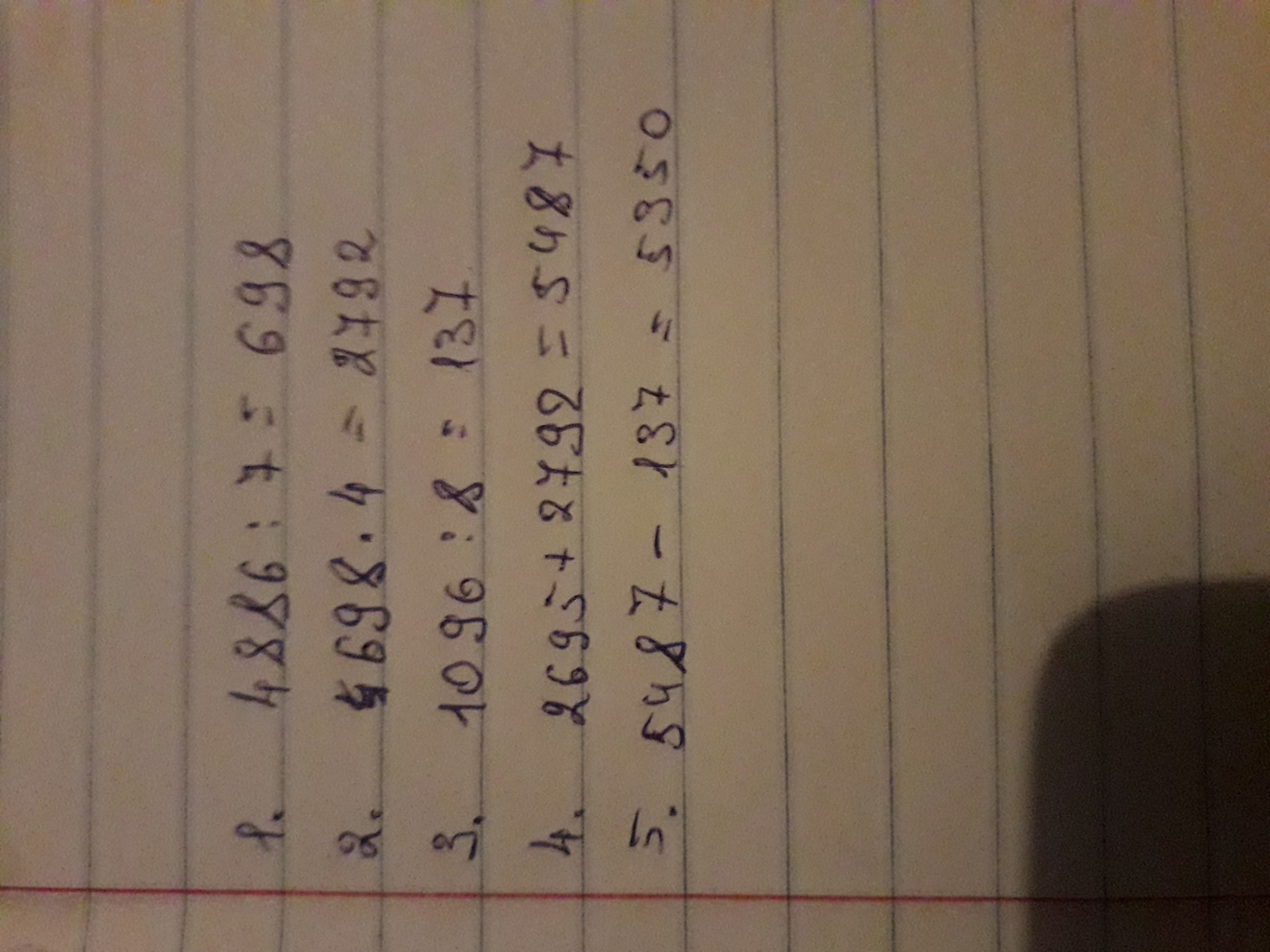 1) 4886/7=698