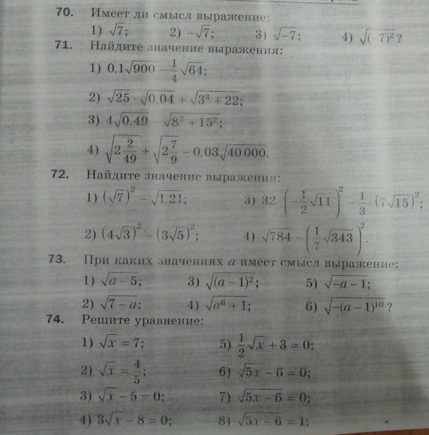 70. 1) имеет смысл; 2) имеет смысл; 3) не имеет смысла, потому что подкоренное выражение всегда больше 0; 4) имеет смысл, потому что