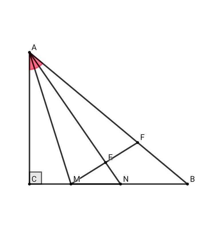 В тр. АЕF: угол FAE + угол AFE = 20° + 70° = 90°. Значит, тр. АЕF - прямоугольный, угол AEF = 90° => AN перпендикулярен MF