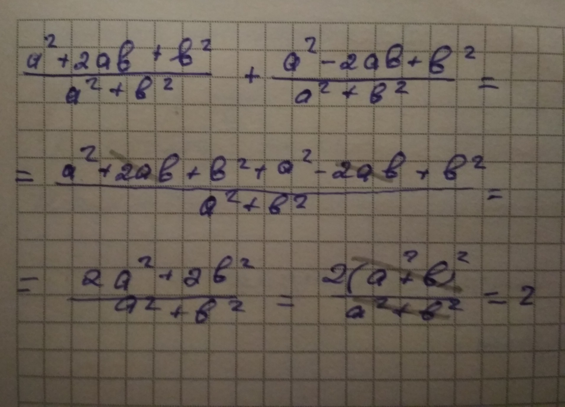 Обший знаменатель а²+b²;