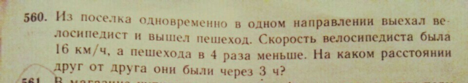 Пешеход идет 4 км в час так-как в 4 раза меньше