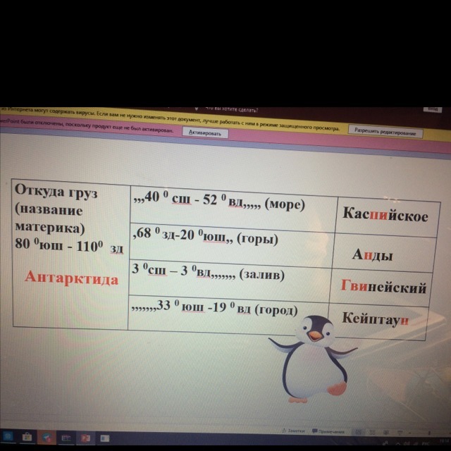 Название груза - ПИНГВИН и доставлен он с материка Антарктиды. Это ребус