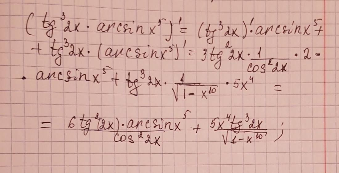 Помогите решить производную tg^3 2x *arcsin x^5,плачу 30 б