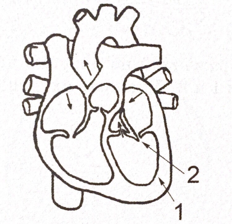 Назовите структуры сердца человека, которые обозначены на рисунке цифрами 1 и 2. Объясните их функции. СРОЧНО НАДО!!!