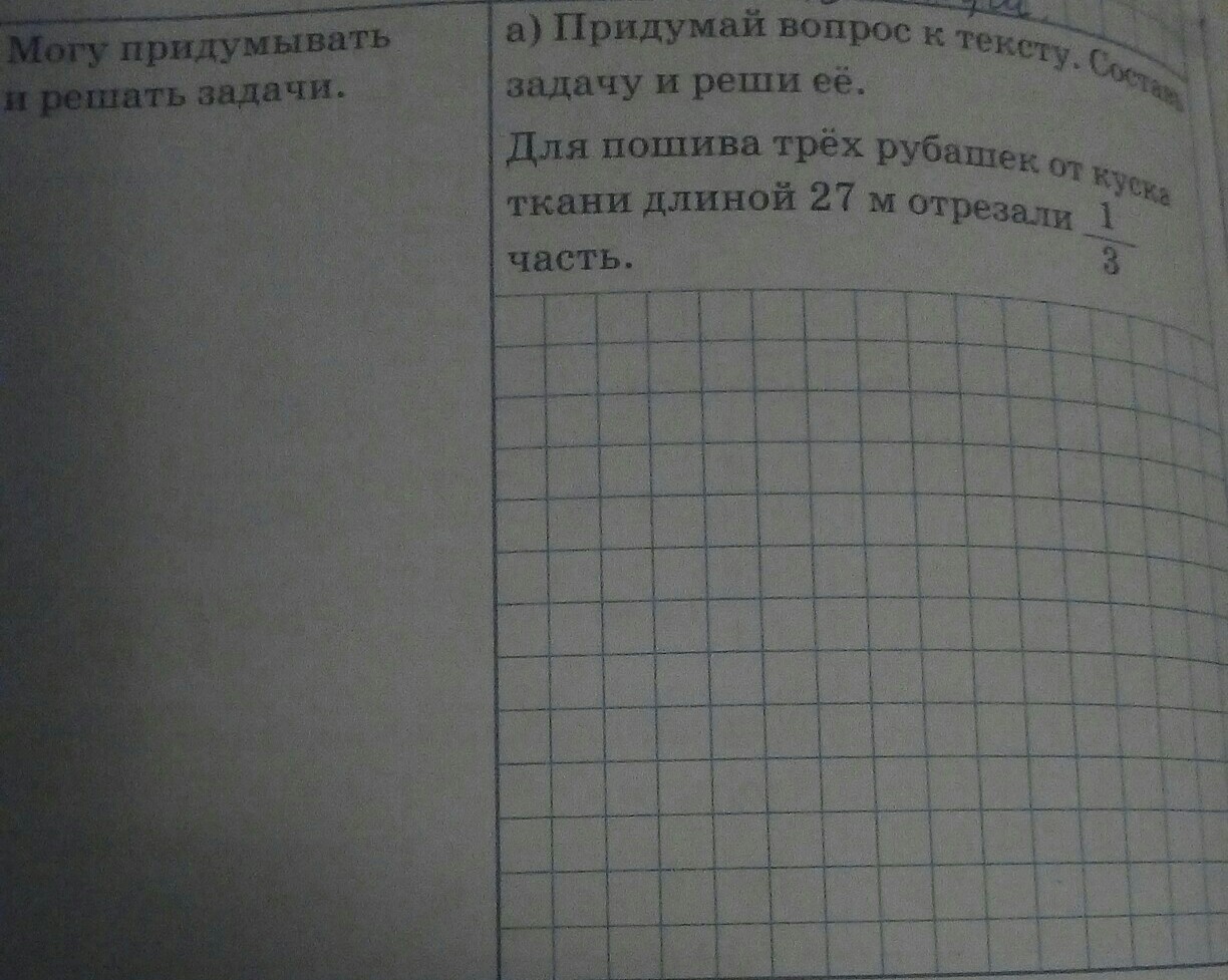Для пошива 3 рубашек от куска ткани отрезали 1/3 часть ткани длинной в 27 метров. Сколько метров ткани отрезали?