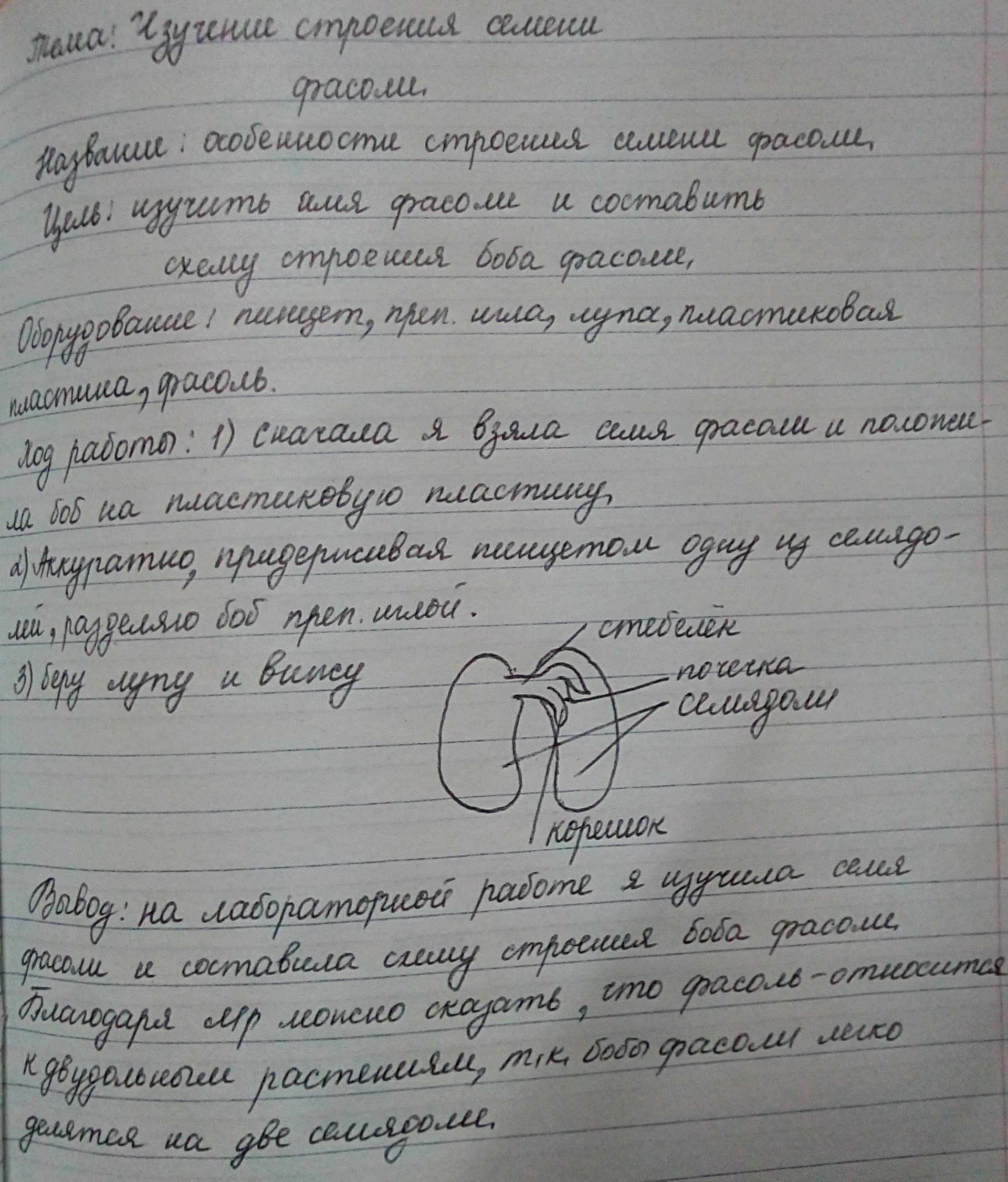 лабораторная работа номер 1 тема изучение строения семени фасоли. 1. название лабораторной работы . 2. цель. 3. оборудование и материалы. 4. ход работы по пунктам ( от 1 лица) . 5. рисунок или схема с подписями. 6. выводы к лабораторной работе