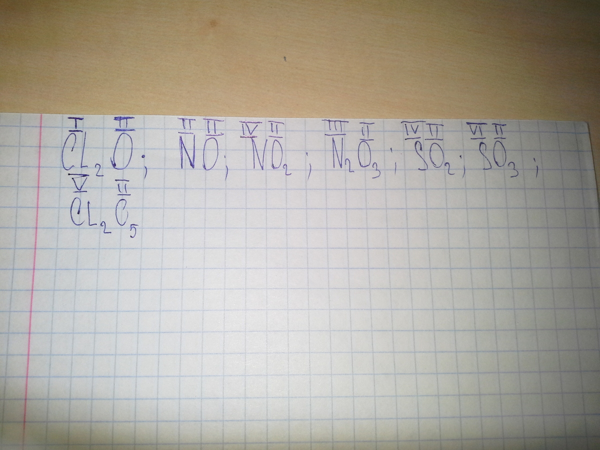 Определите валентность химических элементов по формулам их соединений:Cl2O,NO,NO2,N2O3,SO2,SO3,CL2O5 помогите