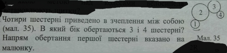 Далее: 3-я шестерня вращается против часовой стрелки, и 4-я шестерня врящается по чаовой стрелке
