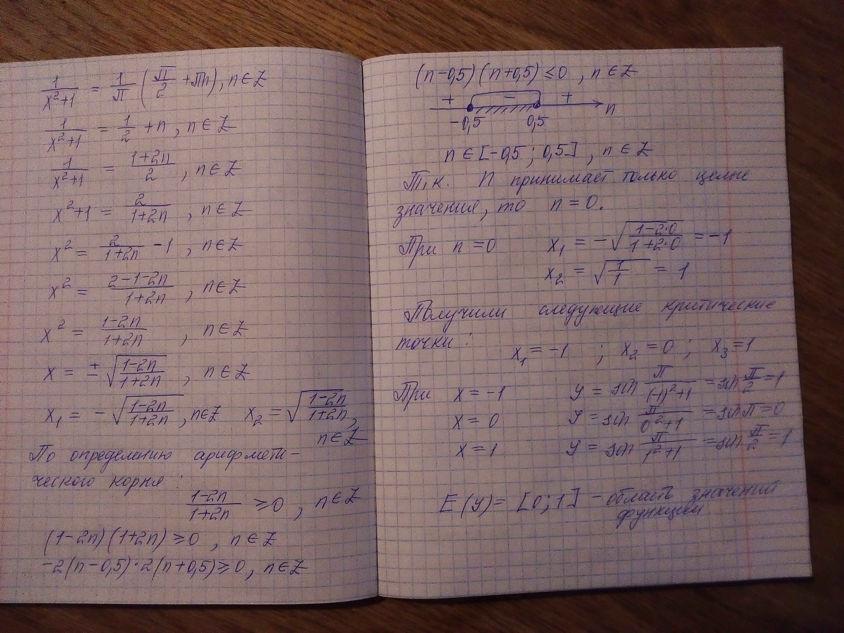 2)Найти область значений функции y=sin(pi/(x^2+1)