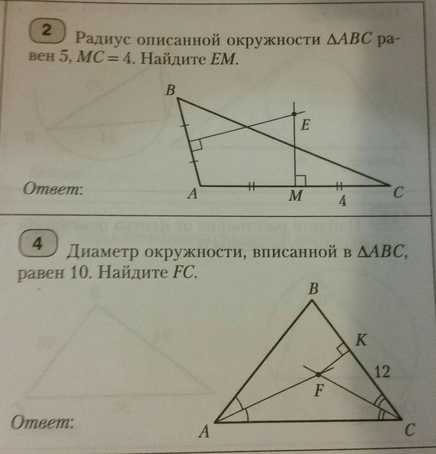 в №4 FK-это радиус. А в задаче дан диаметр=10 т.е. FK=5 и тогда FC=13