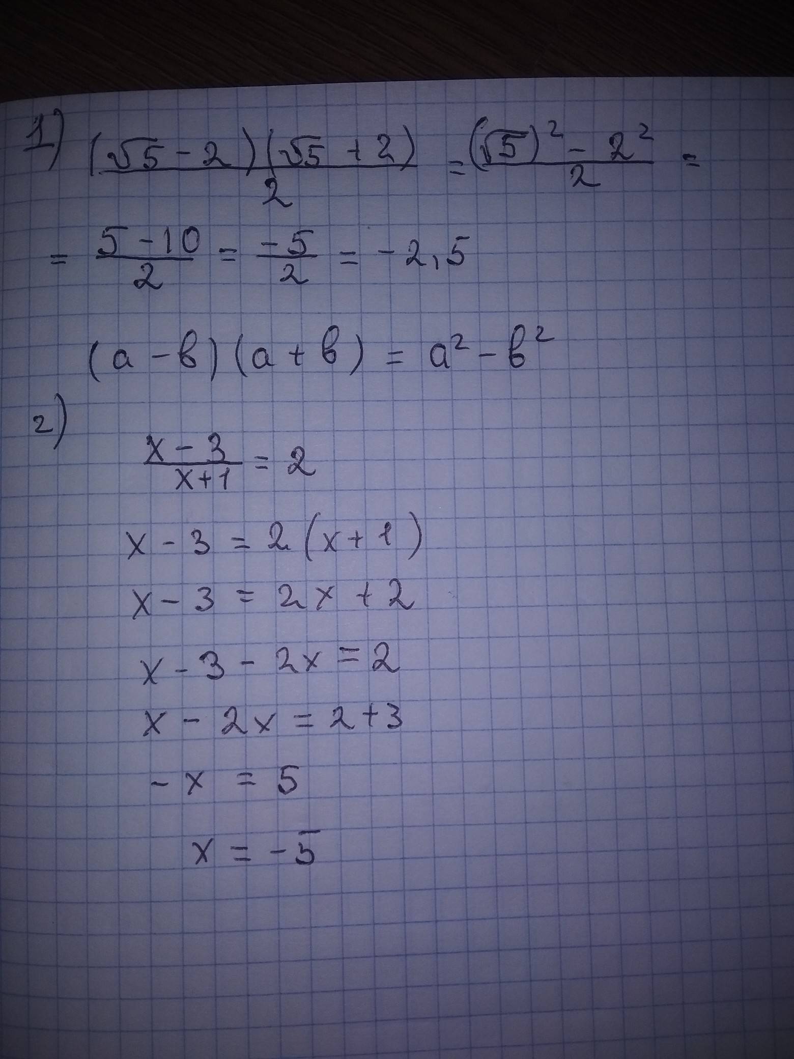 (√5-2)(√5+2)/2 = ((√5)² - 2²)/2 = (5-4)/2 = 1/2