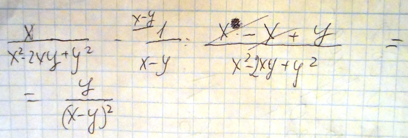 x/(x-y)²-1/x-y =x-(x-y)/(x-y)² =x-x+y/(x-y)² =y/(x-y)²