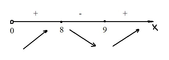Посмотрим, как ведёт себя функция (см. рис.). Видно, что возрастание сменяется убыванием в точке x = 8. Значение в точке максимума: