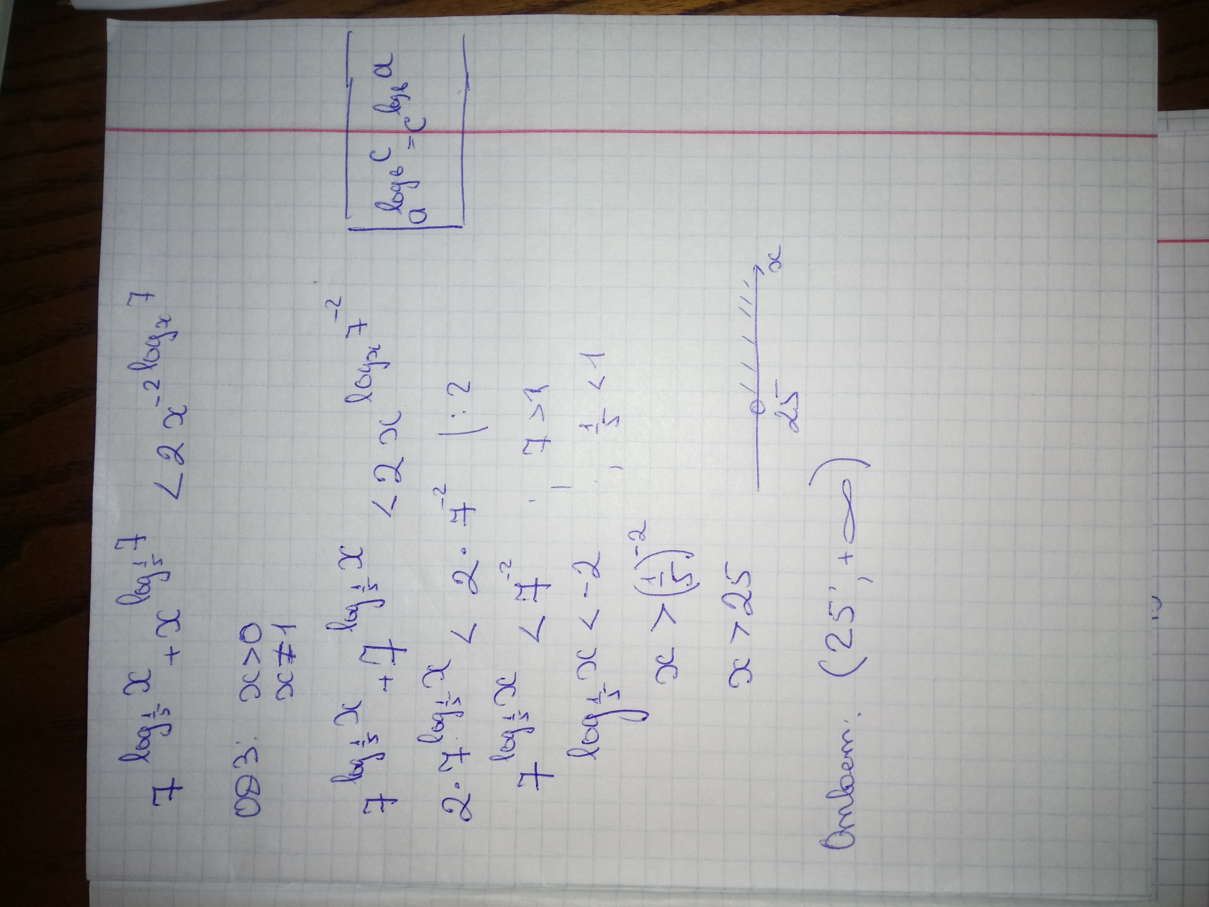 p.s.У меня получился ответ от 0 до 1 и от 25 до + бесконечности (ничего не включая)