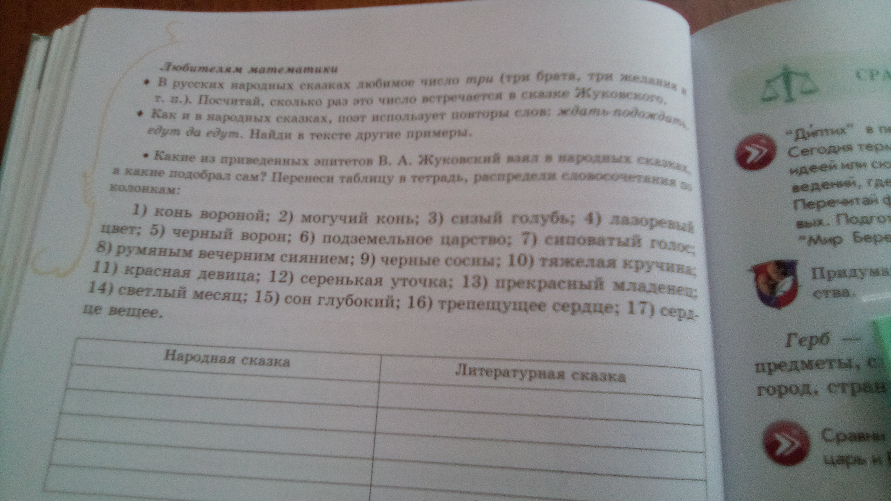 Народная сказка: конь вороной, чёрный ворон, подземельное царство, тяжёлая кручина, красная девица, светлый месяц, сердце вещее.
