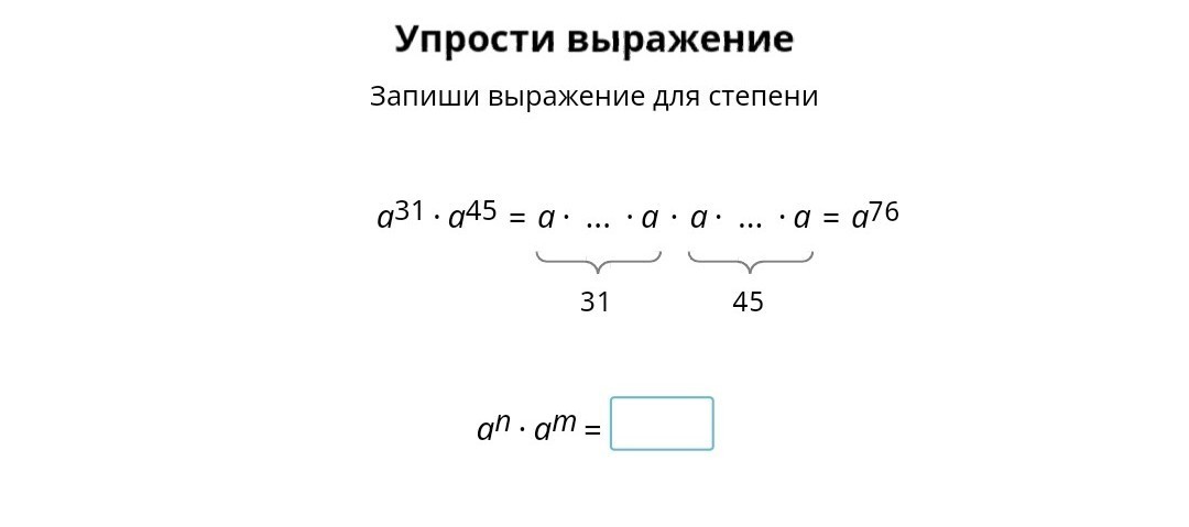 a^n*a^m=a^(n+m).Так как , про умножении значений с одинаковой основой , степени складываются.