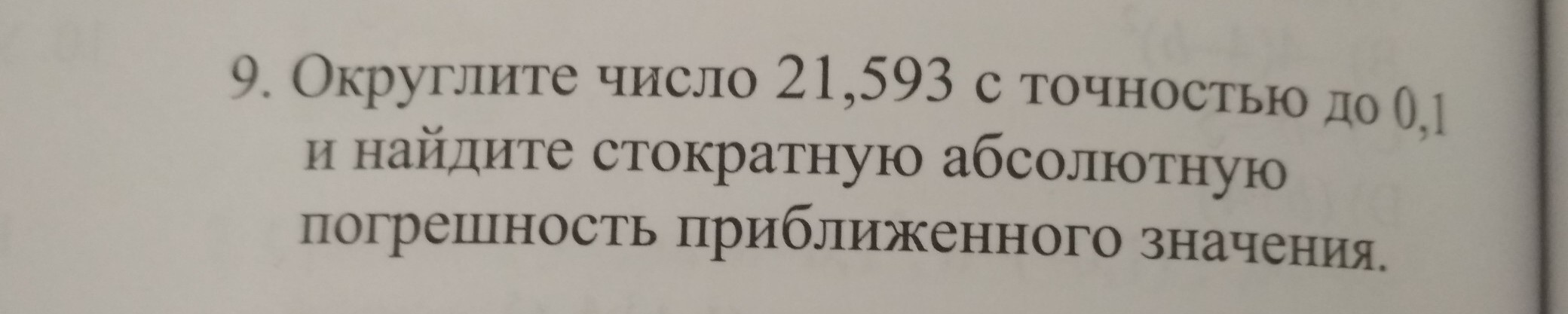 Стократная абсолютная погрешность приближенного значения равна (21,6-21,593)*100=0,7
