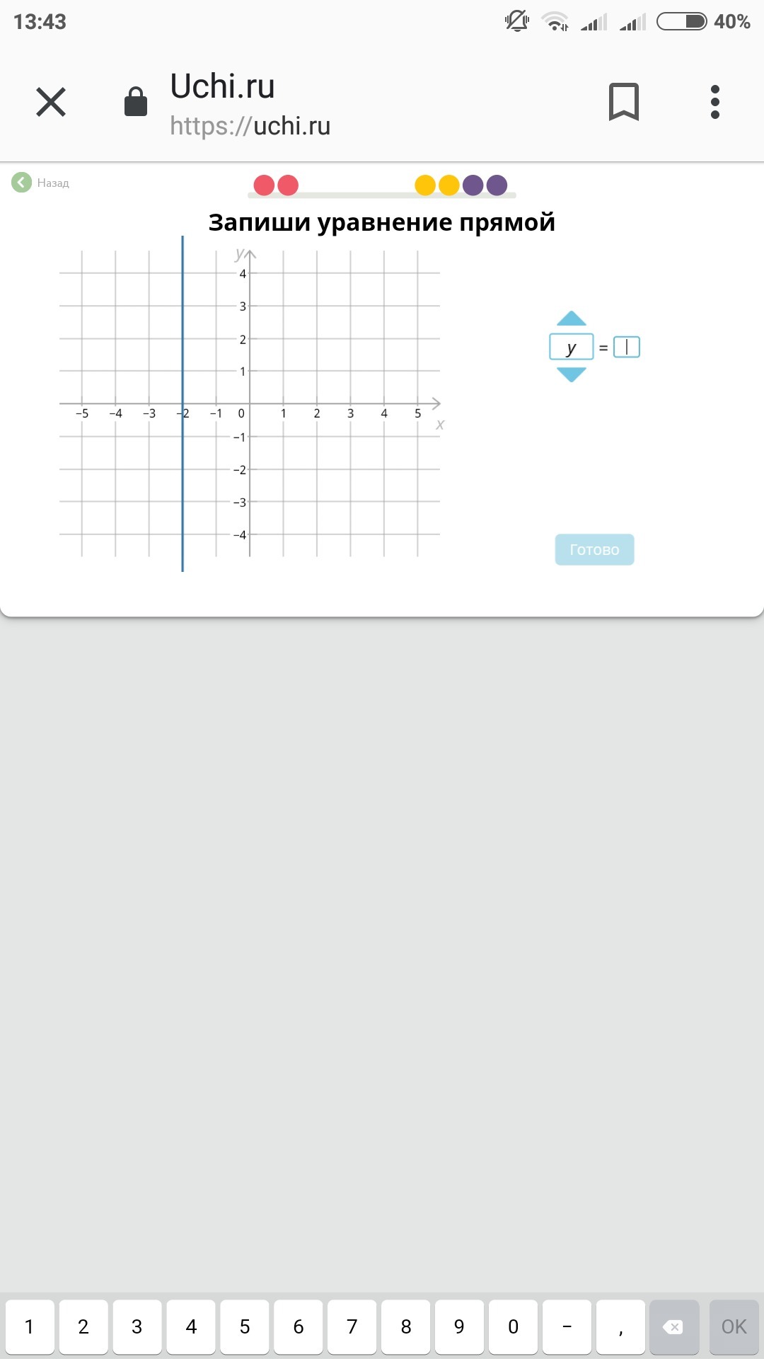 Исходя из того, что y меняется от -бесконечности до +бесконечности, а х постоянен, уравнением прямой будет: