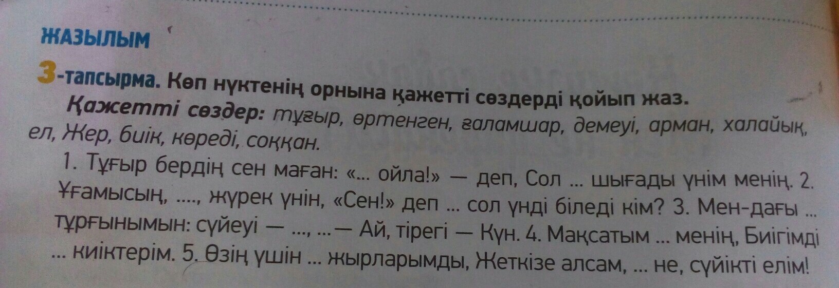 5.Өзің үшін өртенген жырларымды,Жеткізе алсам,арман не, сүйікті елім!