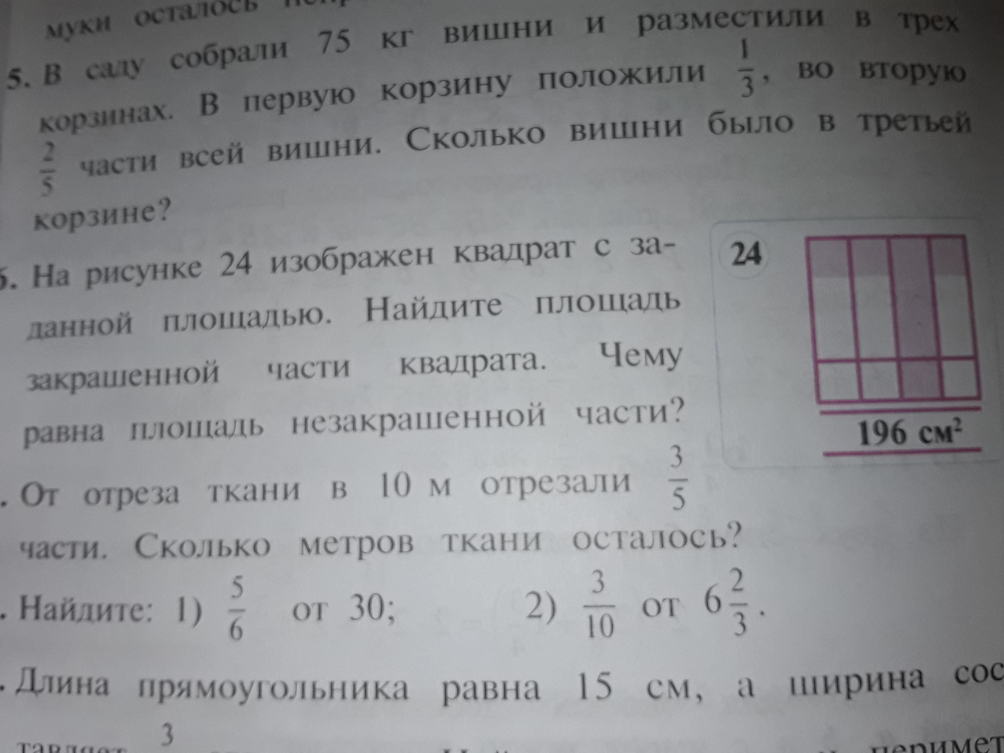 На рисунке 24 изображен квадрат с данной площадью. Найдите площадь закрашенной части квадрата? Чему равна площадь незакрешенной части?