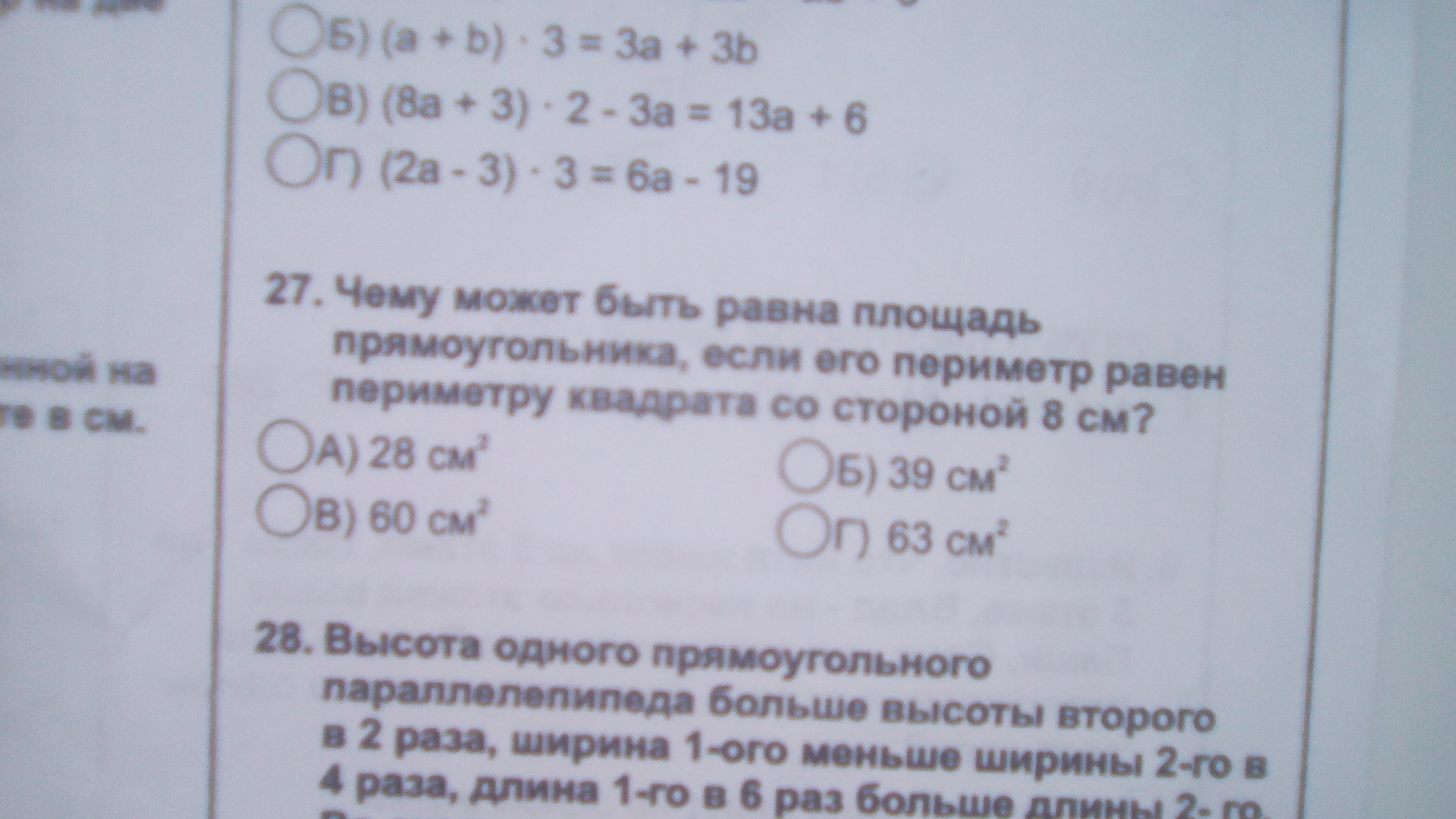 ответ: 28 м2, 39 см2, 60 см2, 63 см2