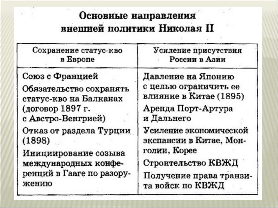 Во внутренней политике правительство Николая последовательно боролось с любыми проявлениями общественной жизни и свободомыслия. «Маленькой победоносной войной» окружение Николая надеялось разрешить внутренние проблемы. Однако поражения от японцев под Порт-Артуром, Ляоляном, Цусимой вызвали всеобщее недовольство и ускорили революцию. В цепи неудач и бедствий царствования Николая роковую роль сыграла Первая мировая война. Урок, извлеченный из военного поражения от Японии, убеждал – война может породить новую революцию. И как в итоге, привело к падению монархии и гражданской войне в России.