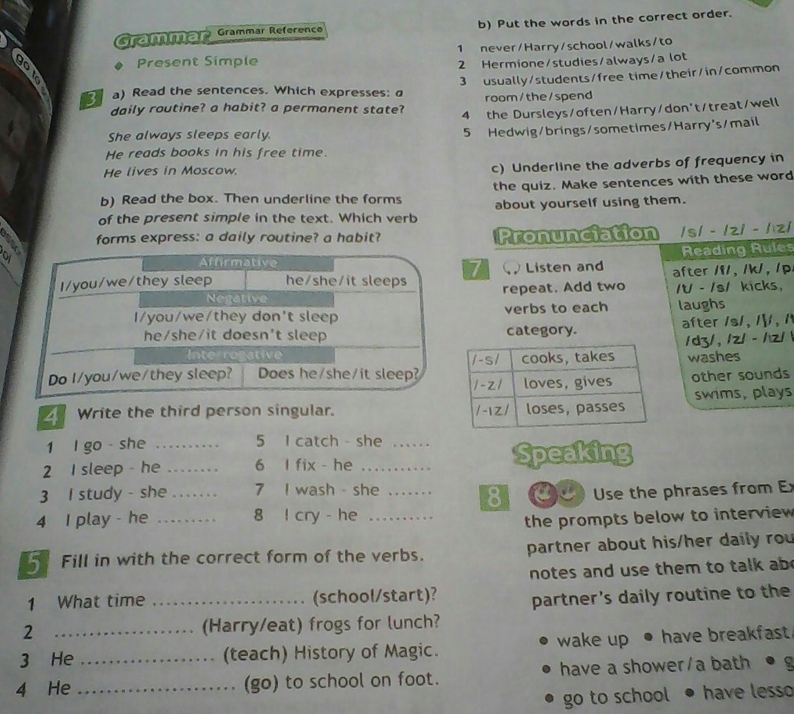 1. Harry never walks to school