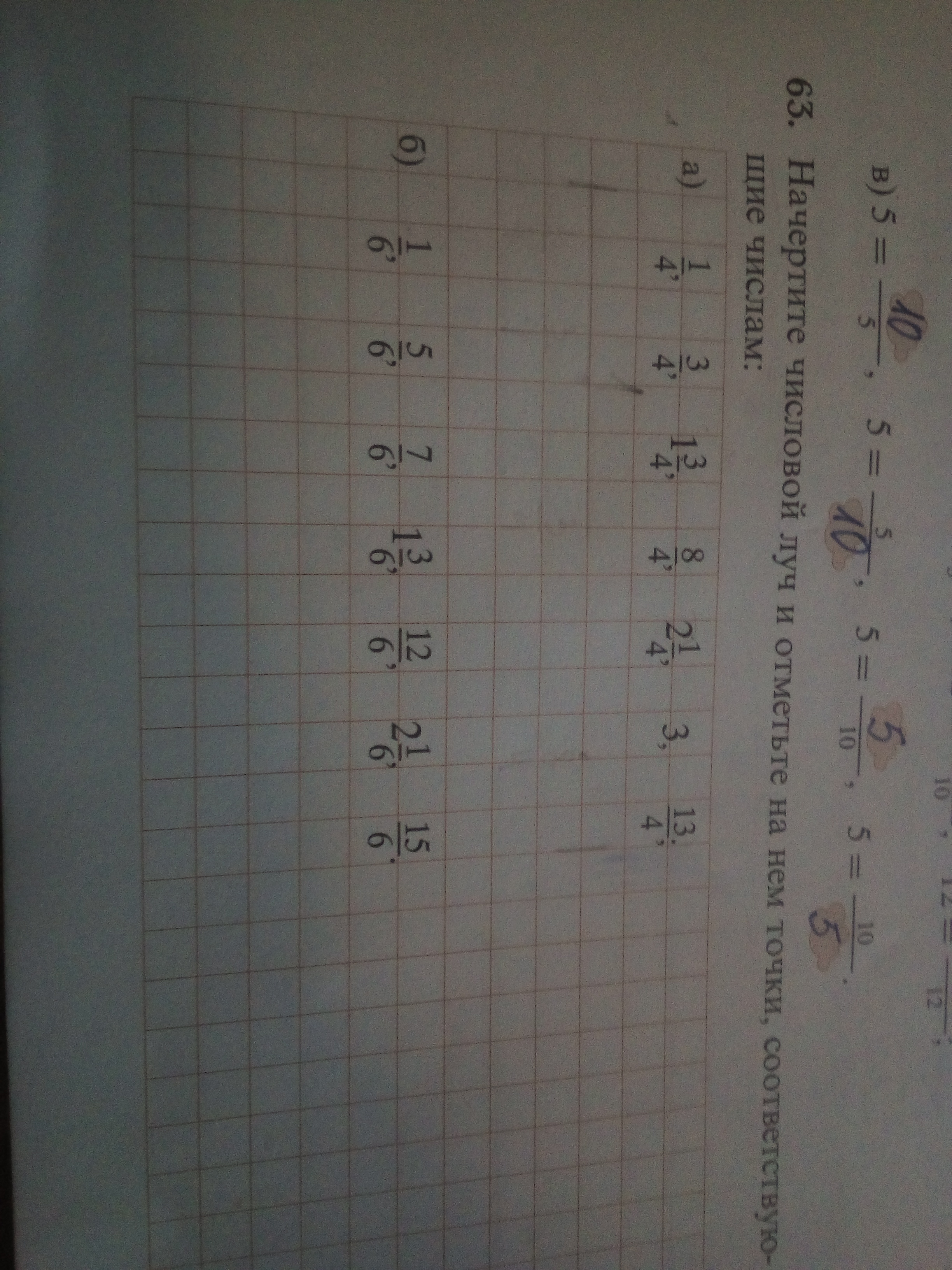 бери масштаб 4 клетки = 1 и отметь на ней точки 1/4 ; 3/4 ; 7/4 ; 8/4; 9/4; 12/4 ; 13;4