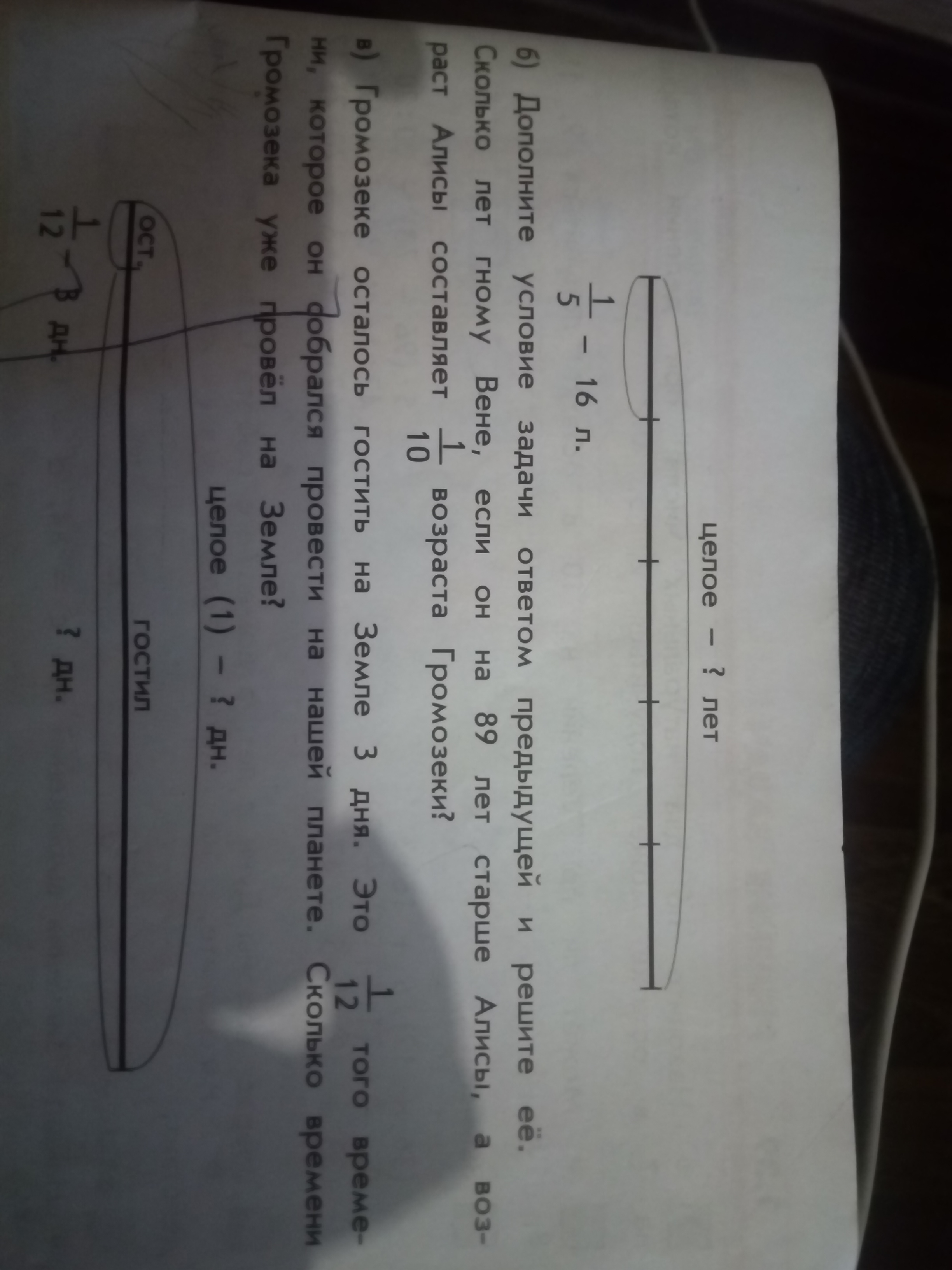 1) Всего Громозека должен провести на Земле 1 целую часть времени, он провел 1/12