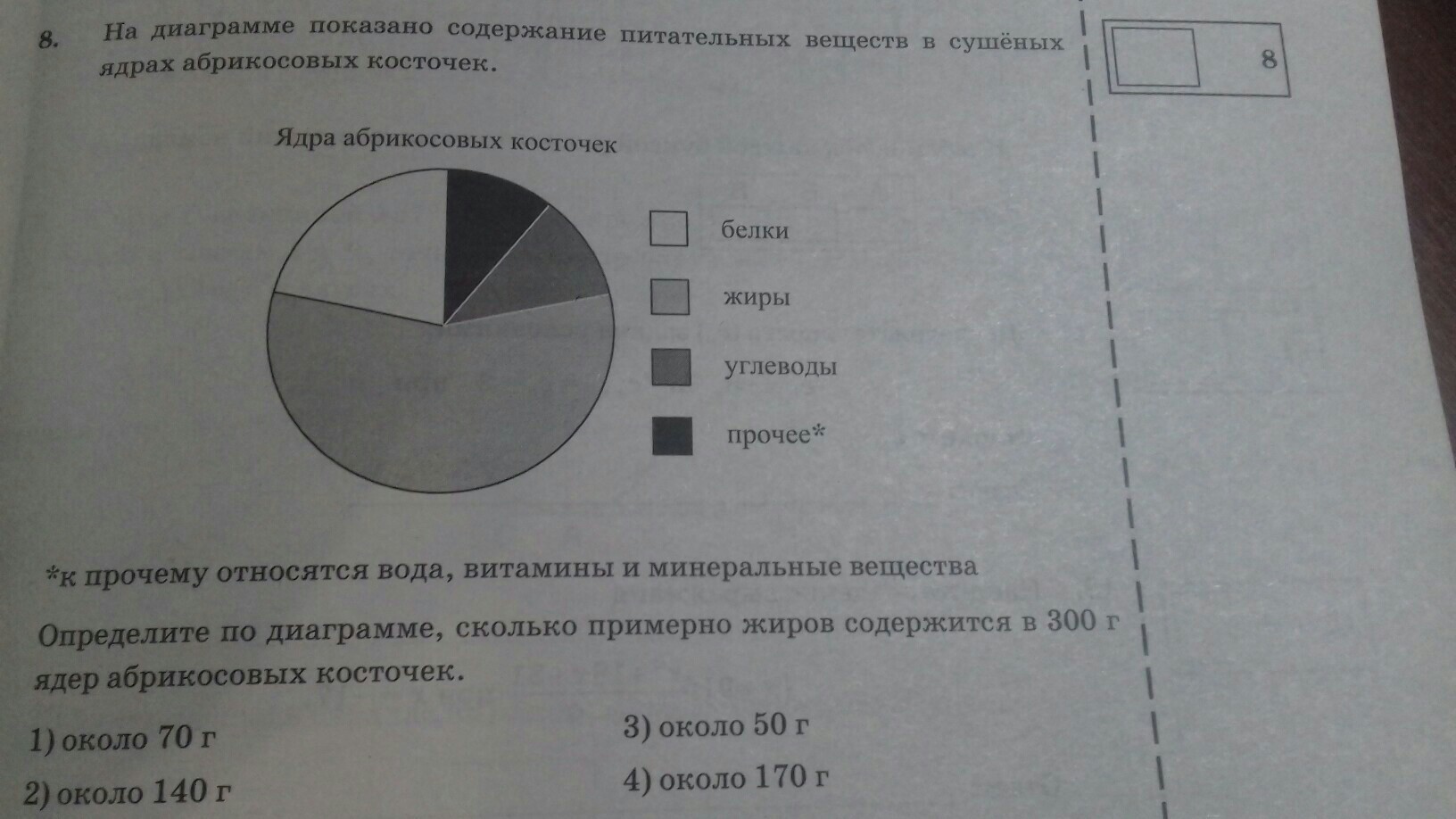 на диаграмме показано содержание питательных веществ в сушёных ядрах абрикосовых косточек. срочно плиз