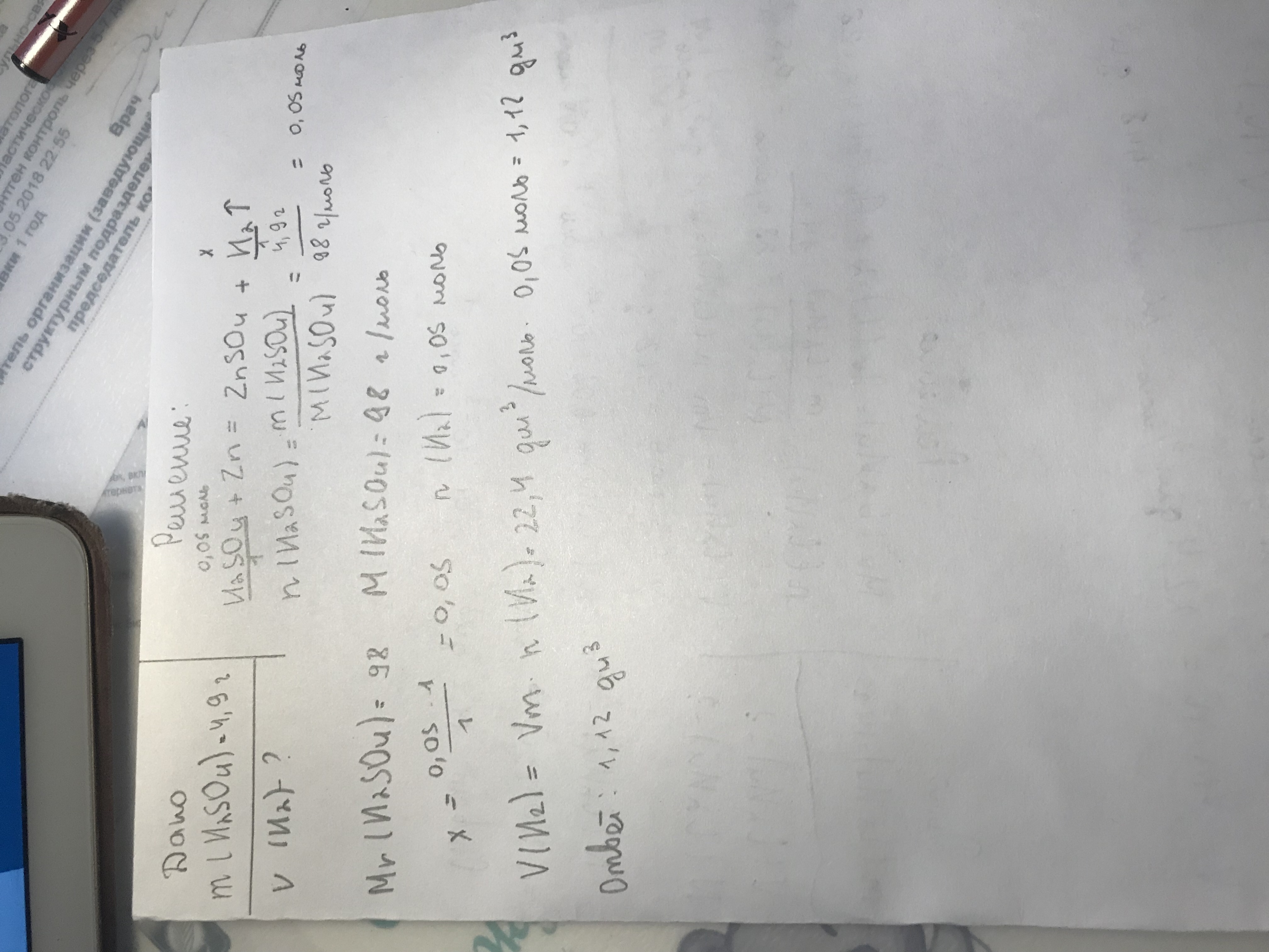 рассчитать объём водорода, который выделяется при взаимодействии 4,9 грамма серной кислоты с цинком