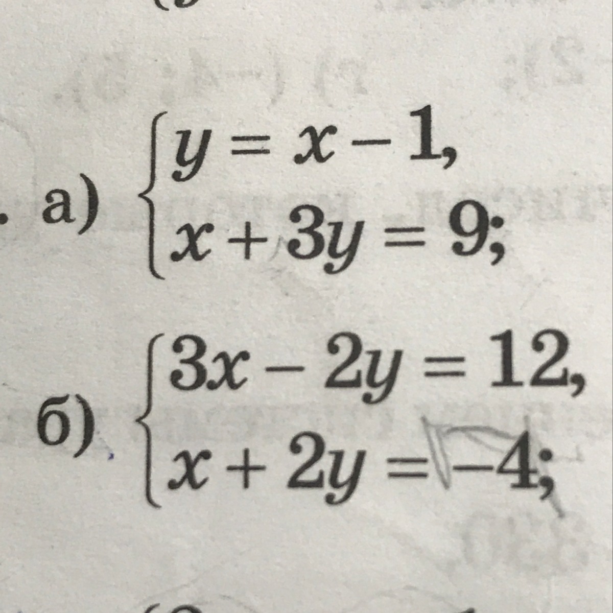 во второе уравнение подставляешь чему равен у. получается х+3(х-1)=9, х+3х-3-9=0, 4х-12=0 ответ 3