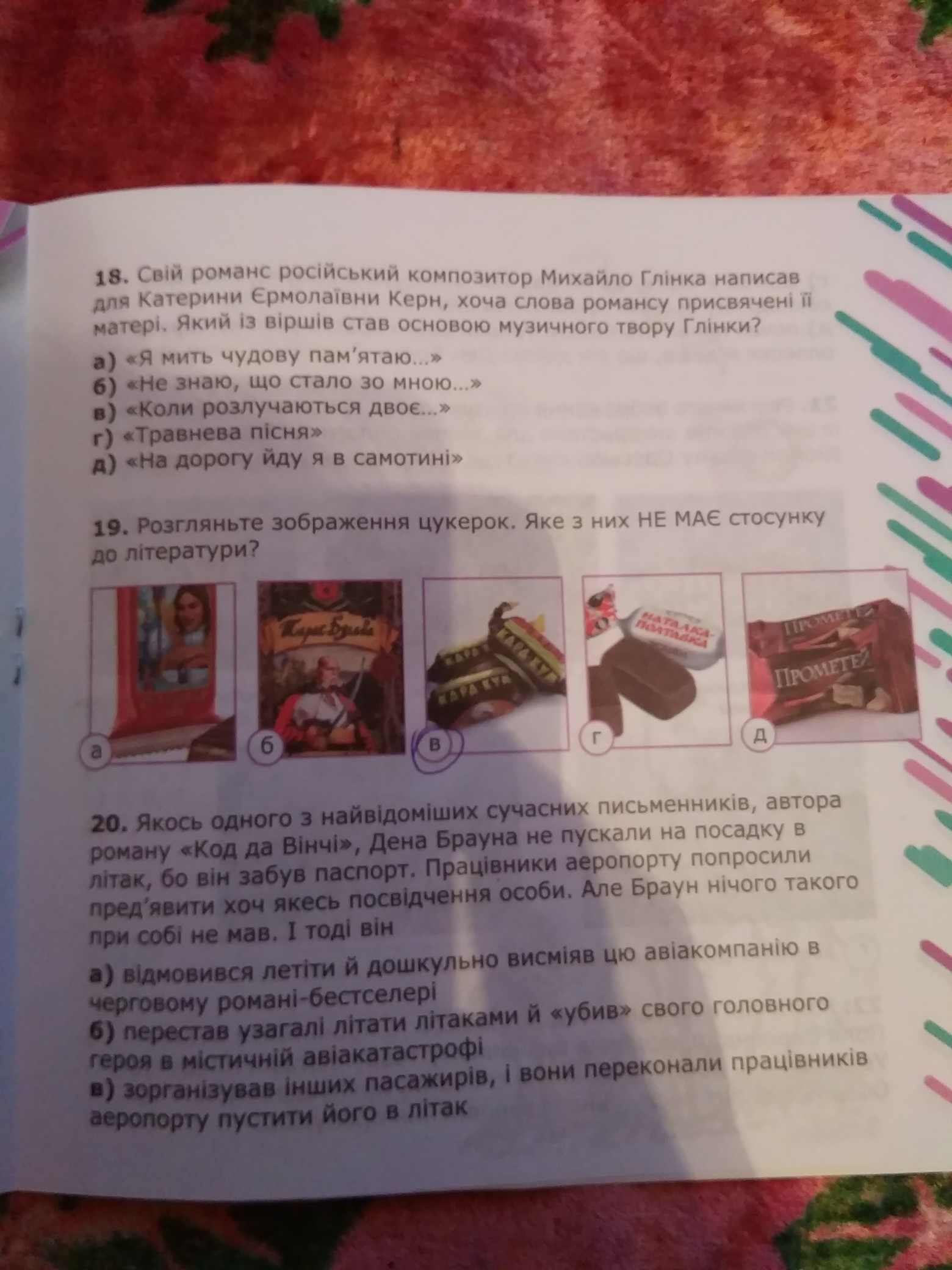 г) спитав у черги, чи не має хто книги Жена Брауна, і показав обкладинку зі своїм призвищем і фото.