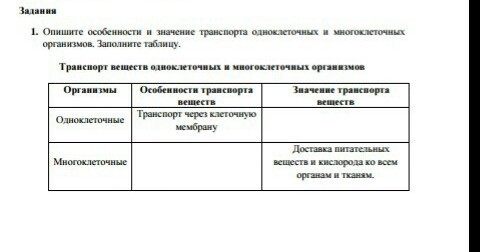 У одноклеточных транспорт веществ обеспечивает работу всех органов и движение клетки