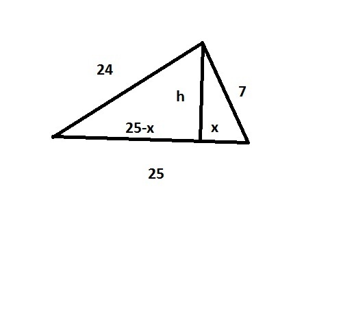 h²=7²-(49/25)²=(7-49/25)(7-49/25) =126/25 * 224/25=(126*224)/625 = (9*14*14*16)/625