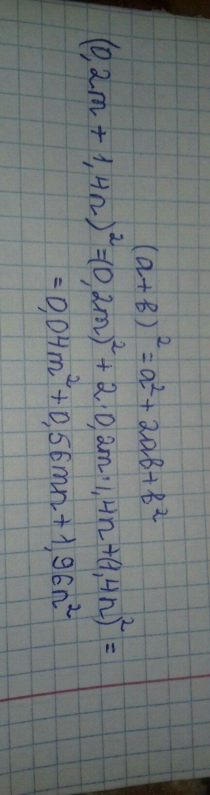 (0.2m+1.4n)² = 0.04m²+2*0.2*1.4mn +1.96n² = 0.04m²+0.56mn+1.96n²