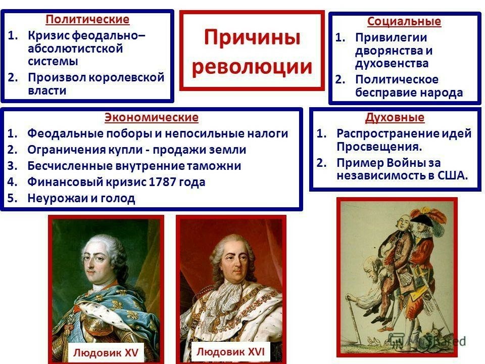 1. Политическое бесправие значительного пласта населения, сословные привилегии (3 сословие не могло занимать гос. должности, больше всего возмущена буржуазия).